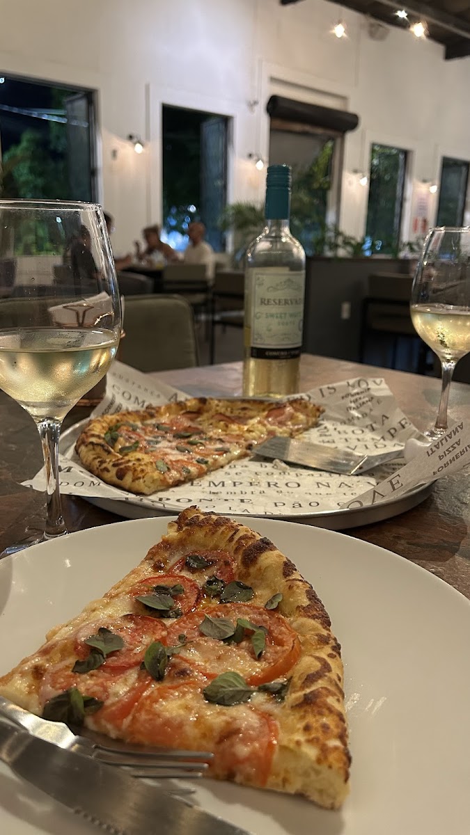 Uma experiência completa para quem aprecia uma boa pizza em um ambiente sofisticado e acolhedor. O espaço é amplo, bem decorado e convida à permanência — ideal para um jantar tranquilo ou um encontro entre amigos. Logo na entrada, o crostine já impressiona: crocante, saboroso e servido com um toque artesanal que dá vontade de repetir. Experimentamos as pizzas de calabresa e portuguesa — ambas com massa leve, bem assada, borda crocante e recheio farto e equilibrado. Dá pra sentir o cuidado com os ingredientes e o respeito pela tradição italiana. O atendimento tornou a experiência ainda mais especial.